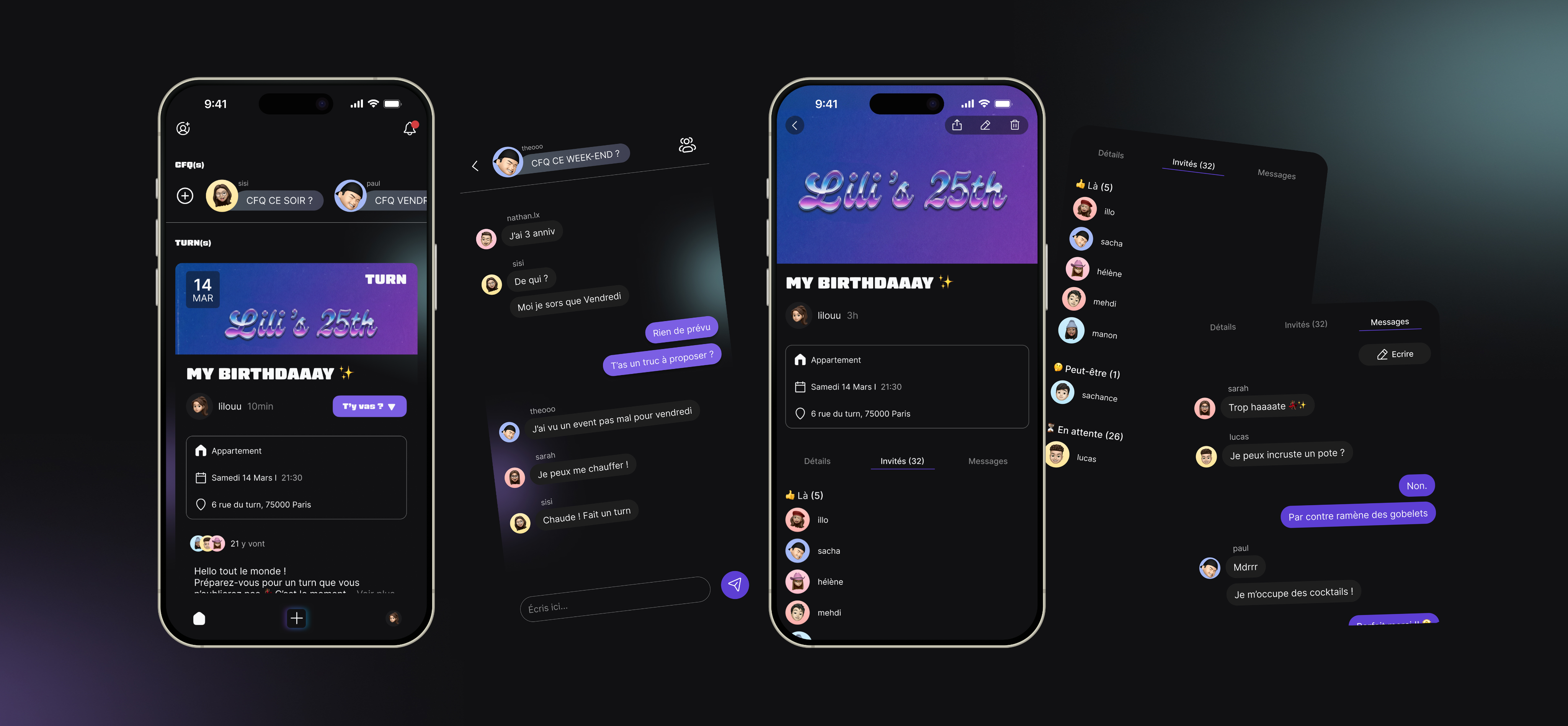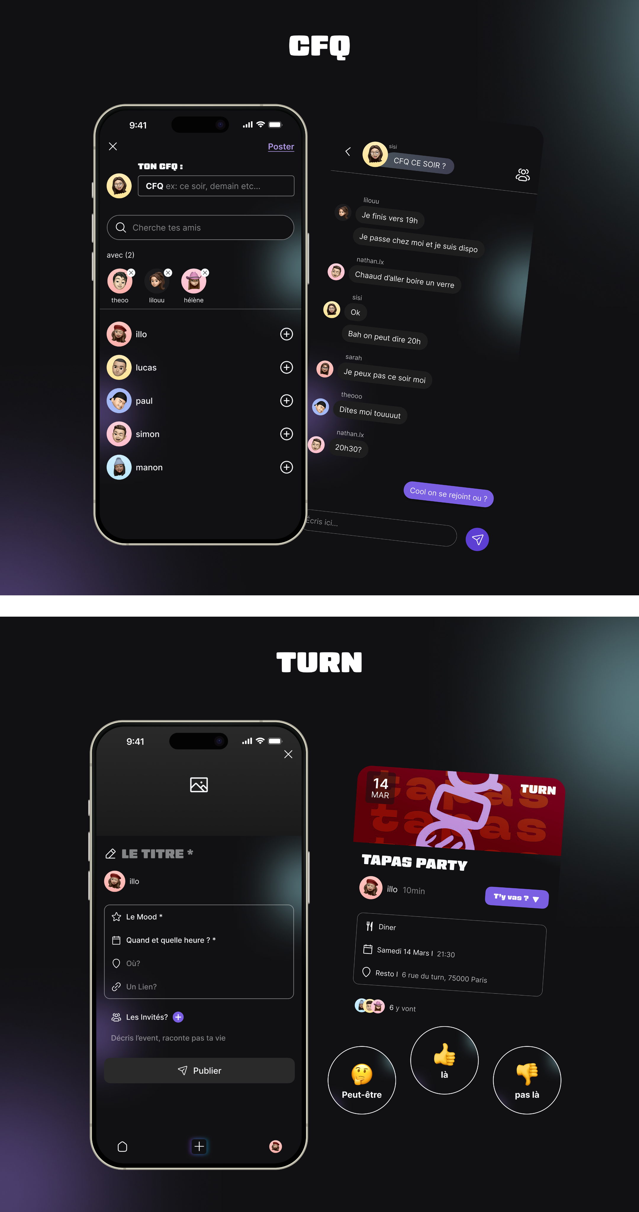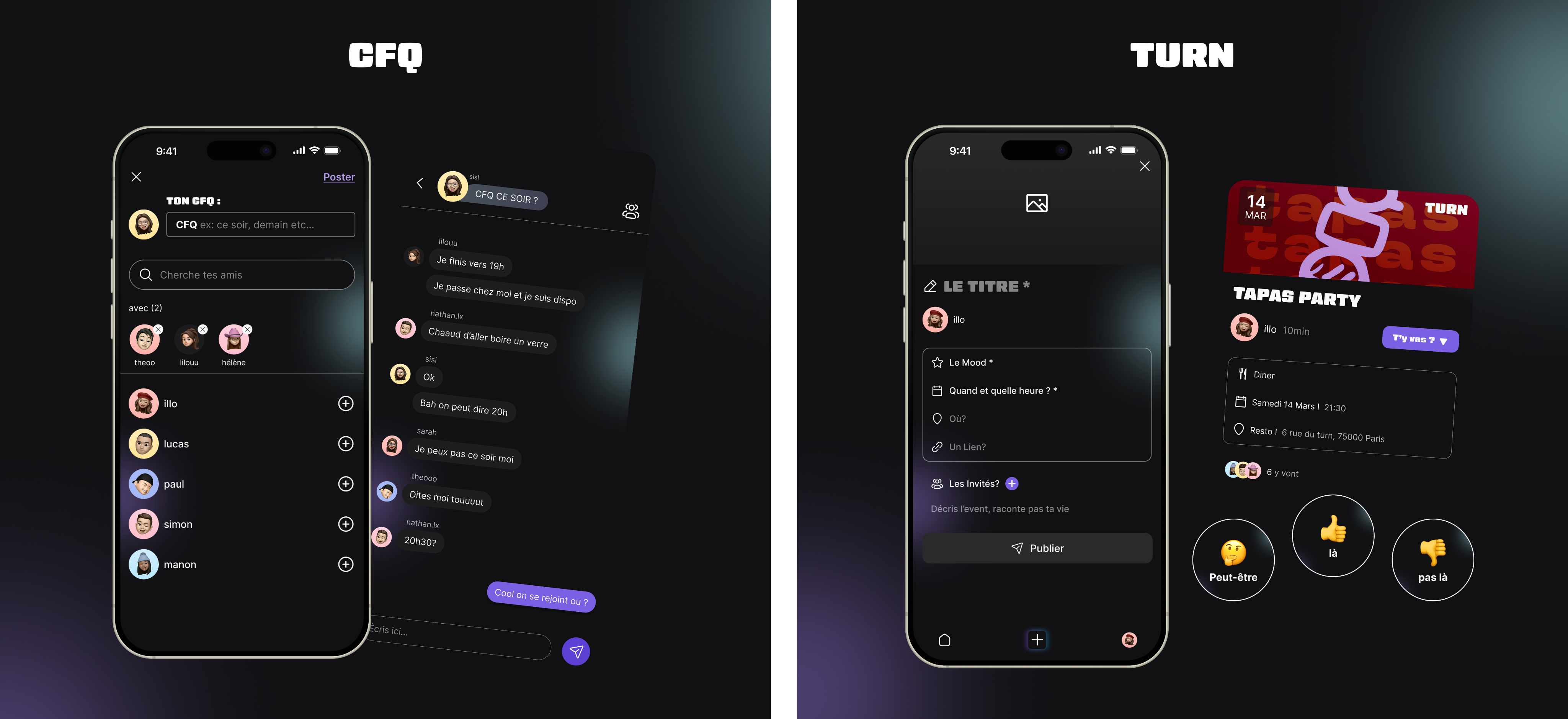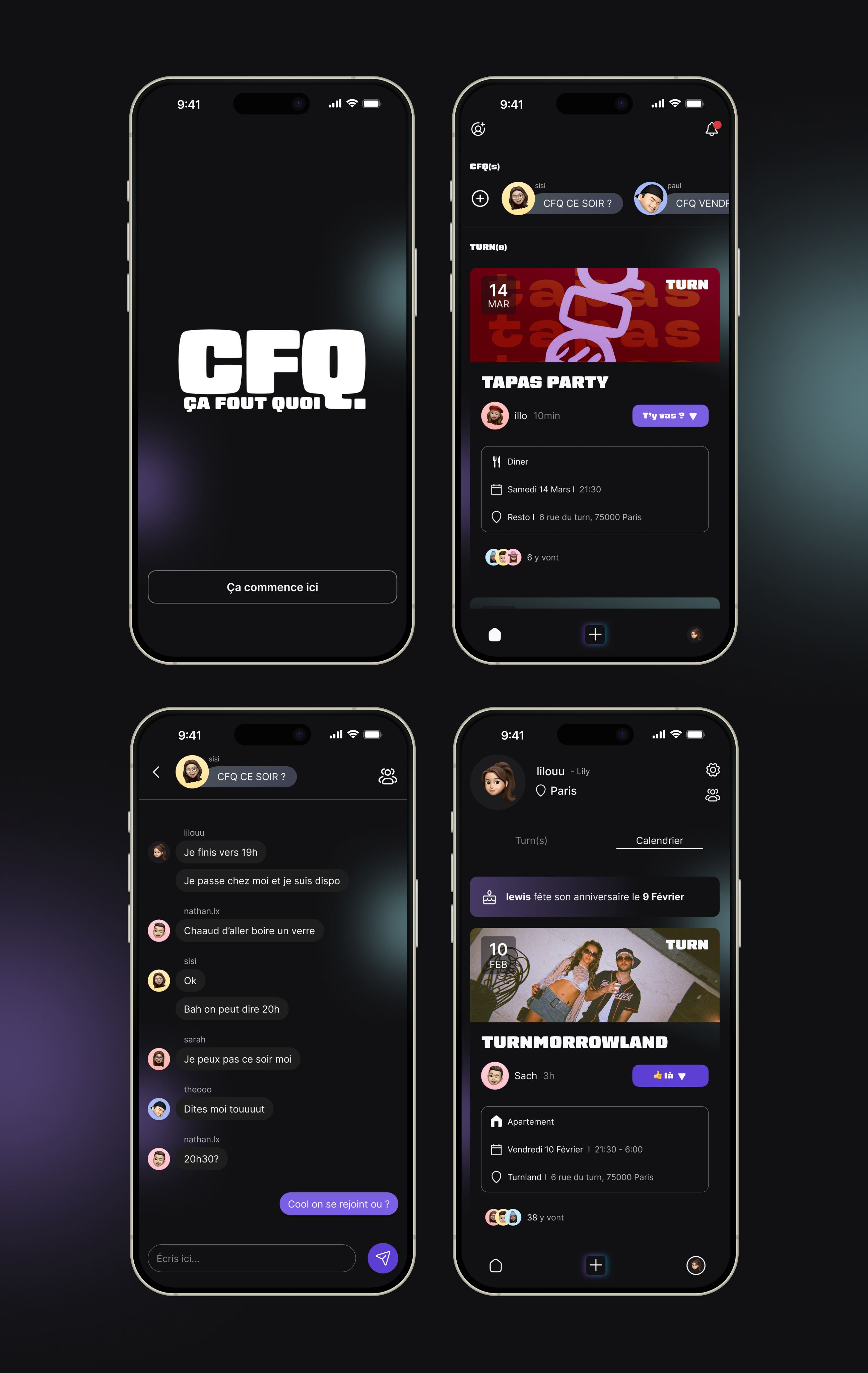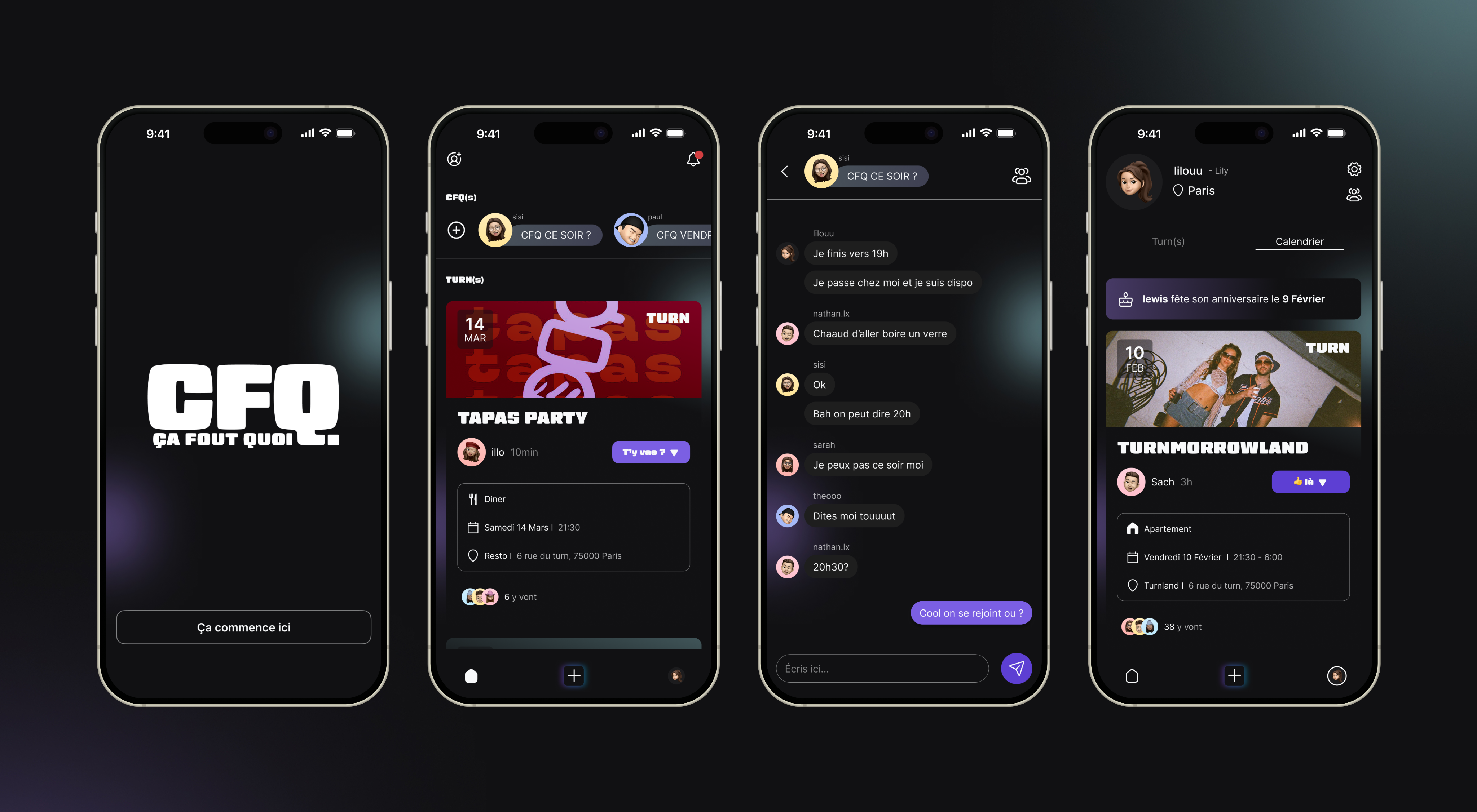 CFQ est une application sociale conçue pour simplifier l’organisation de sorties entre amis.
